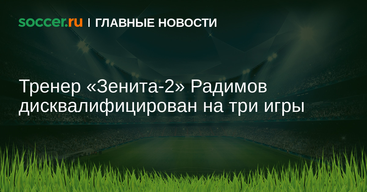 Глава Контрольно-дисциплинарного комитета РФС Артур Григорьянц сообщил, что главный тренер «Зенита-2» Владислав Радимов не сможет руководить своей командой в ближайших трех матчах за оскорбление делегата матча 4-го тура ФНЛ с «Енисеем»: