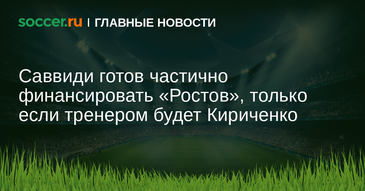 По информации источника, бизнесмен Иван Саввиди готов частично спонсировать «Ростов» только при условии того, что главным тренером команды останется Дмитрий Кириченко.