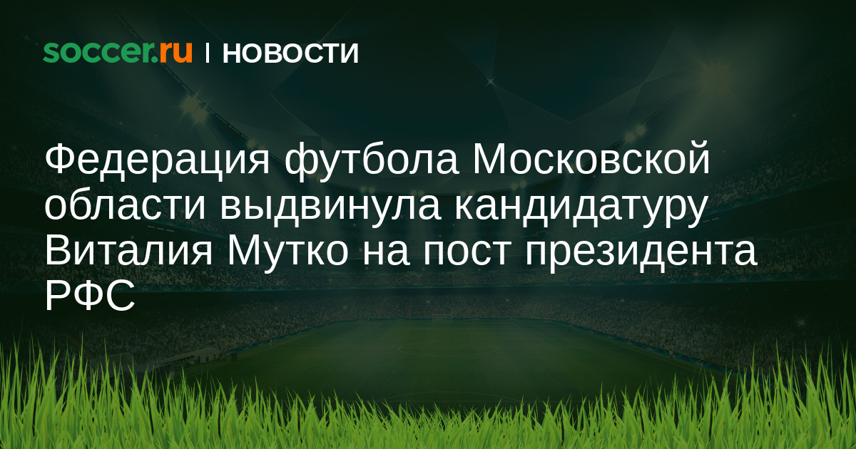 «9 августа 2016 года состоялся президиум РОО „Федерация футбола Московской области“, на котором в качестве кандидата на должность президента Российского футбольного союза единогласно был выдвинут Мутко. Виталий Леонтьевич поблагодарил ФФМО за оказанное доверие и дал свое согласие баллотироваться на пост президента РФС».