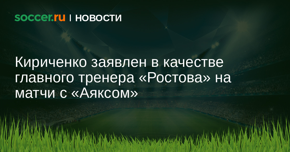 Российский специалист Дмитрий Кириченко будет руководить «Ростовом» в матчах 4-го квалификационного раунда Лиги чемпионов против «Аякса».