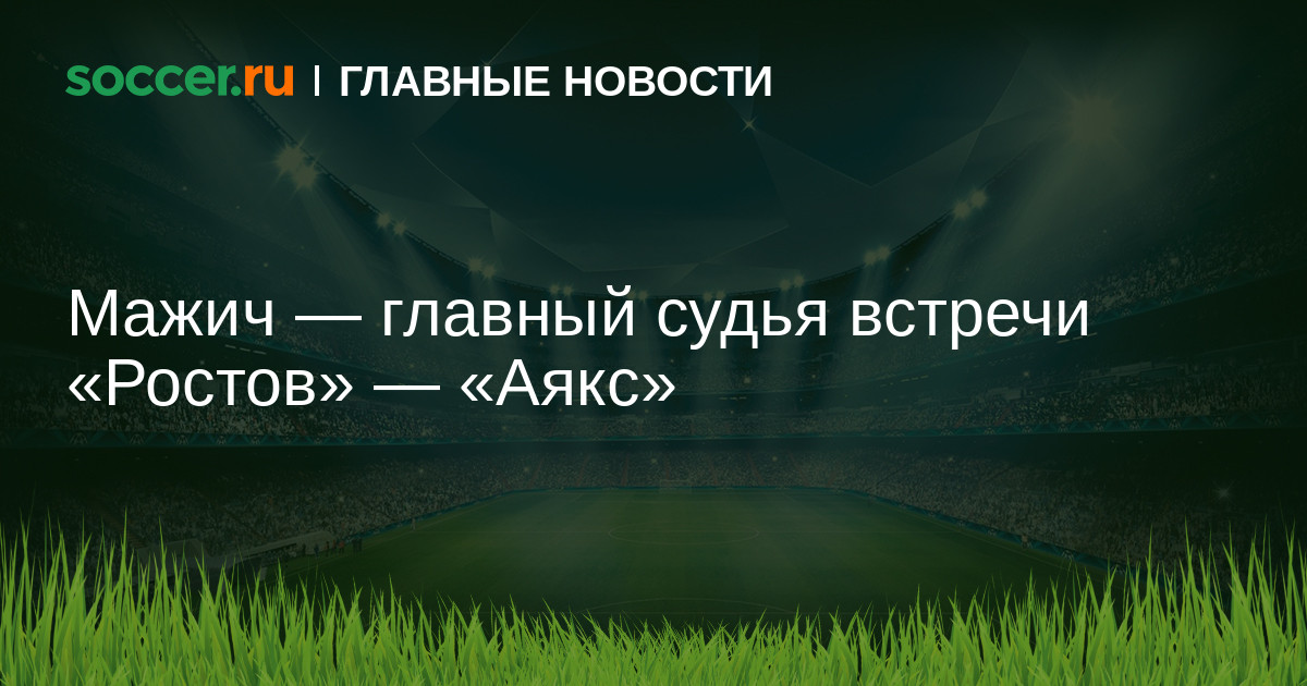 УЕФА назначил арбитров на ответный матч раунда плей-офф Лига чемпионов между «Ростовом» и «Аяксом». Напомним, в Голландии встреча завершилась ничьей. Ответный матч будет судить сербская бригада во главе с Милорадом Мажичем.
