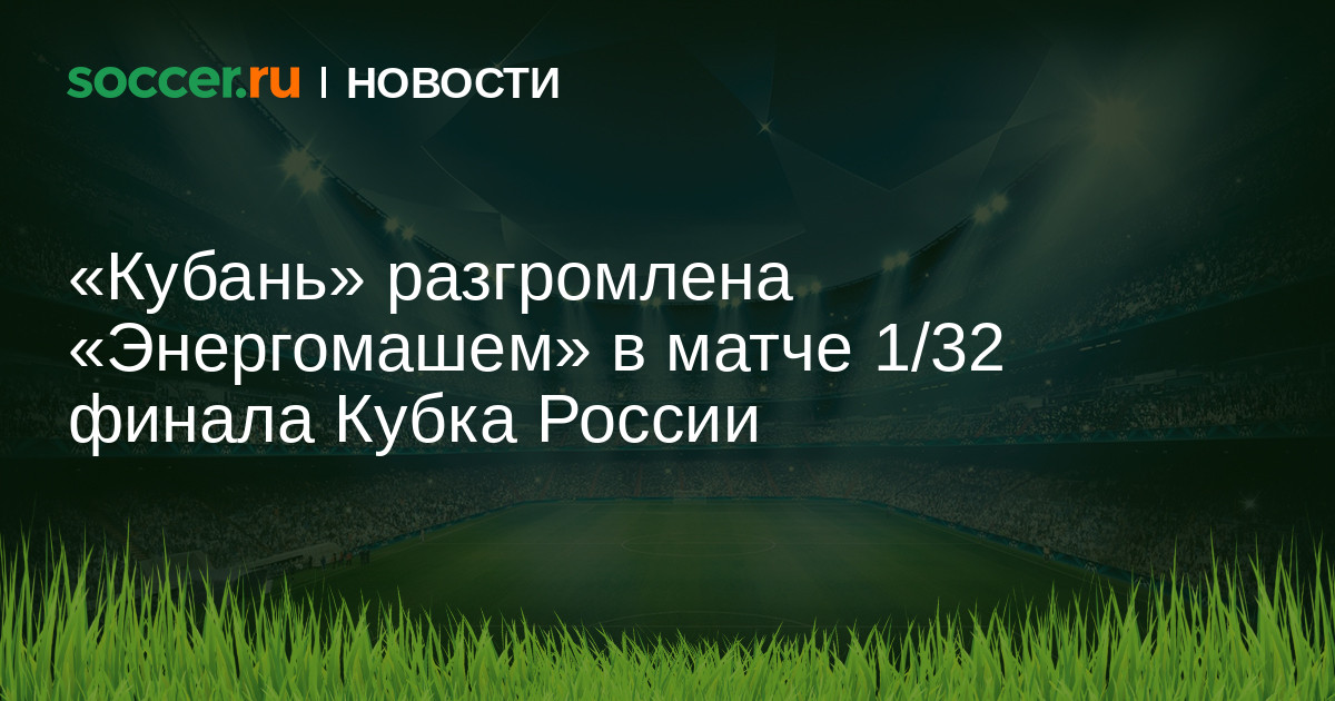 Краснодарская «Кубань» крупно уступила белгородскому «Энергомашу» в поединке 1/32 финала Кубка России (0:3). Голы в матче забивали Колесников, Самойлов и Сергеев.