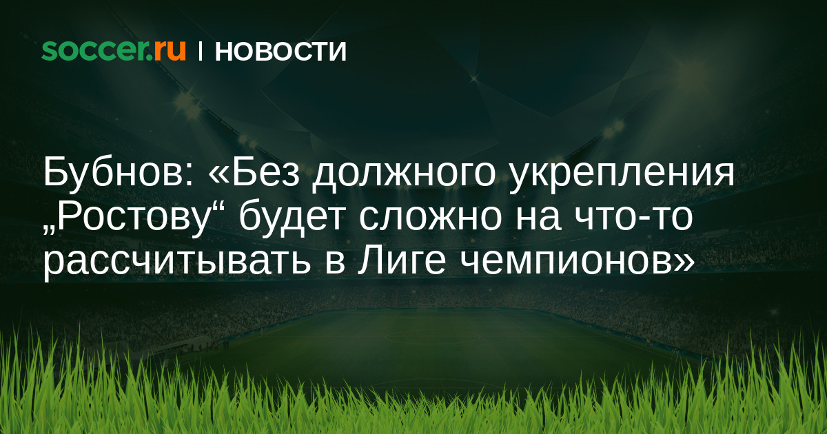 Известный футбольный эксперт Александр Бубнов считает, что «Ростову» необходимо поработать на трансферном рынке для успешного выступления на групповом этапе Лиги чемпионов: