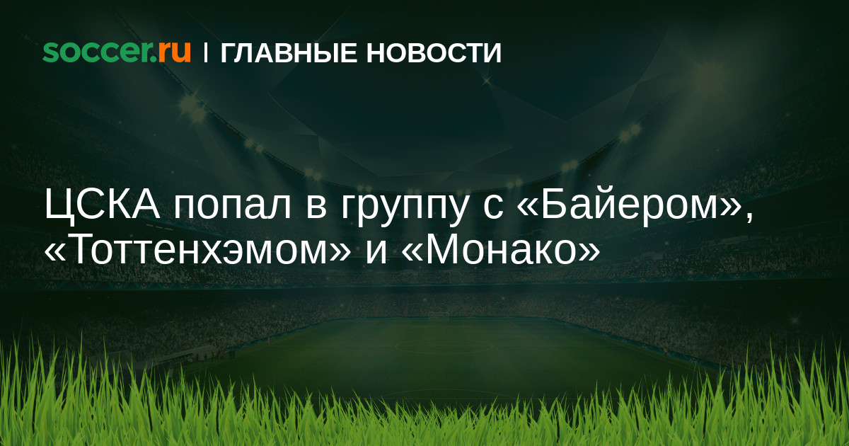 В результате жеребьевки группового этапа Лиги чемпионов ЦСКА с первой корзины попал в квартет Е. Чемпион России встретится в групповом турнире с немецким «Байером», английским «Тоттенхэмом» и «Монако».