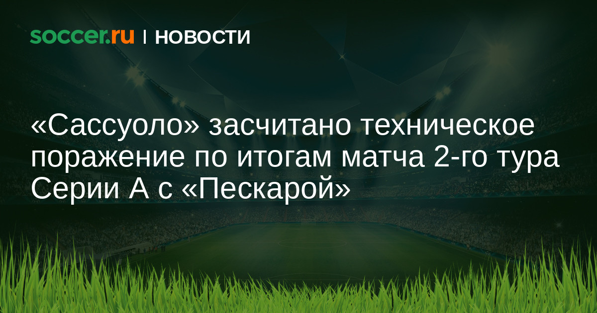 «Сассуоло» засчитано техническое поражение (0:3) по итогам матча второго тура Серии А против «Пескары» (2:1). Дело в том, что в составе «нероверди» на поле вышел хавбек Антонио Рагуза, который подписал контракт с клубом через день после того, как «Сассуоло» подал официальную заявку на сезон. Чтобы дозаявить нового игрока, клуб должен был заменить в заявке старого и при этом уведомить Лигу об изменениях. В «Сассуоло» утверждают, что все было сделано по правилам, однако Серия А придерживается другого мнения.