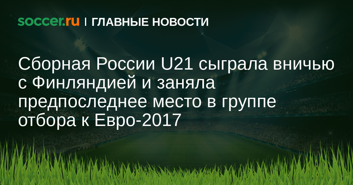 Сборная России U21 сыграла вничью с ровесниками из Финляндии в последнем туре отборочного этапа к Евро-2017. Счет в матче уже на 3-й минуте открыл Максим Палиенко, однако в середине второго тайма соперник забил ответный мяч. Матч так и завершился вничью — 1:1.