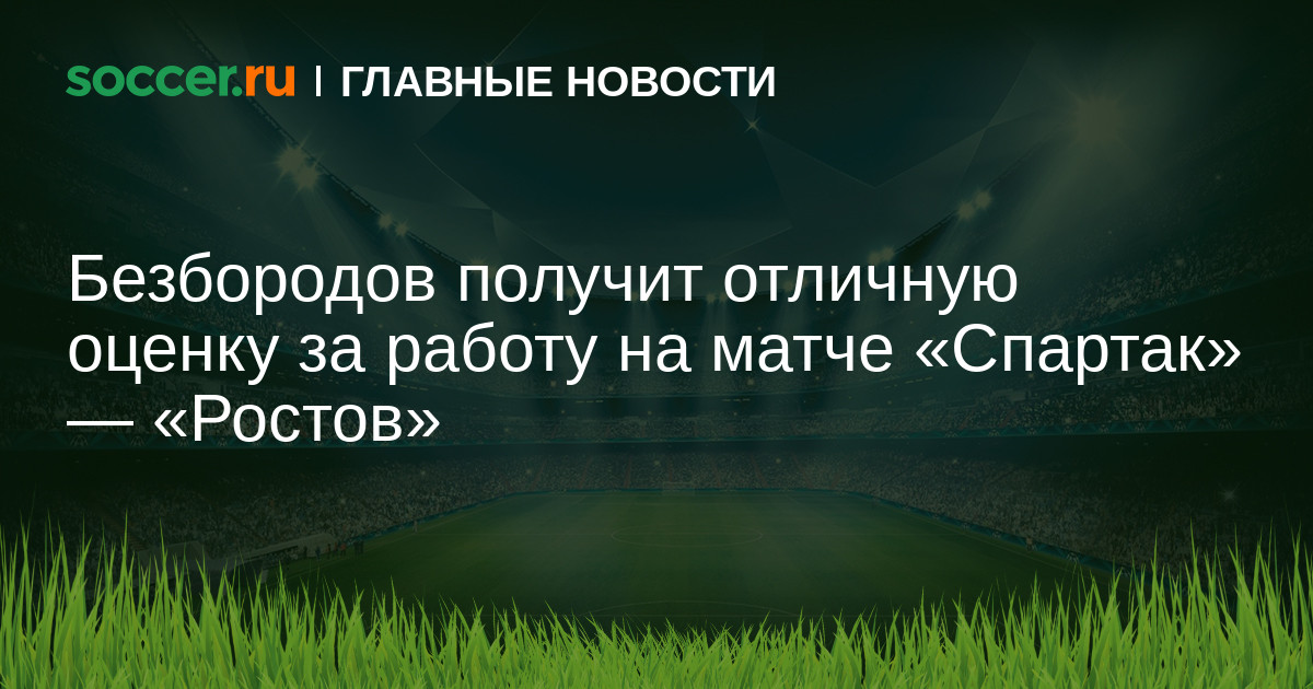 По информации источника, судья матча 10-го тура РФПЛ между «Спартаком» и «Ростовом» (1:0) Владислав Безбородов получит от инспектора поединка отличную оценку – выше 8,5 балла.