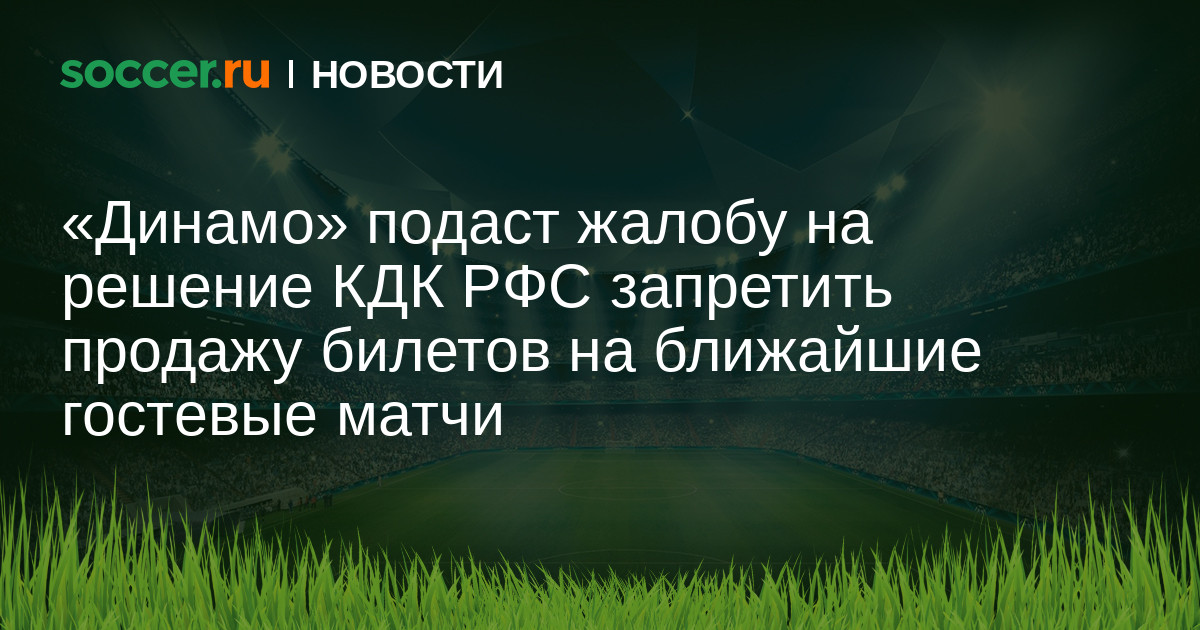 Московское «Динамо» подаст жалобу на решение Контрольно-дисциплинарного комитета РФС о запрете продавать билеты на три ближайших гостевых матча во всех турнирах.