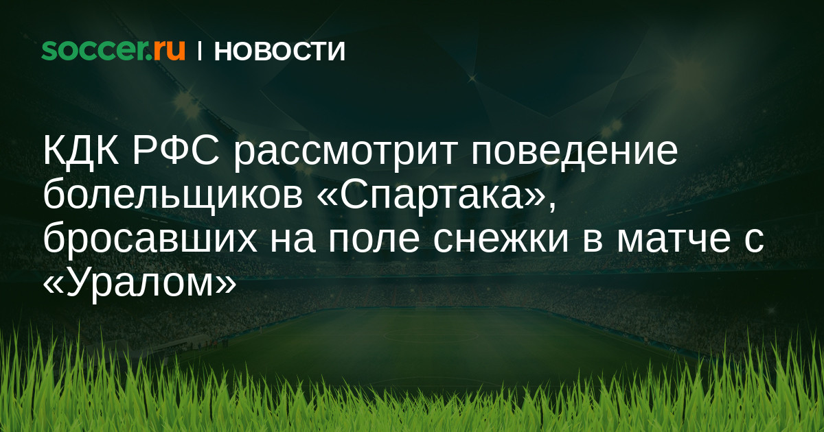 Председатель Контрольно-дисциплинарного комитета РФС Артур Григорьянц сообщил, что на заседании комитета, который состоится в субботу, будет рассмотрен инцидент с бросанием снежков на поле болельщиками «Спартака» во время поединка 11-го тура РФПЛ против «Урала», из-за чего арбитру встречи Александру Егорову пришлось приостанавливать матч: