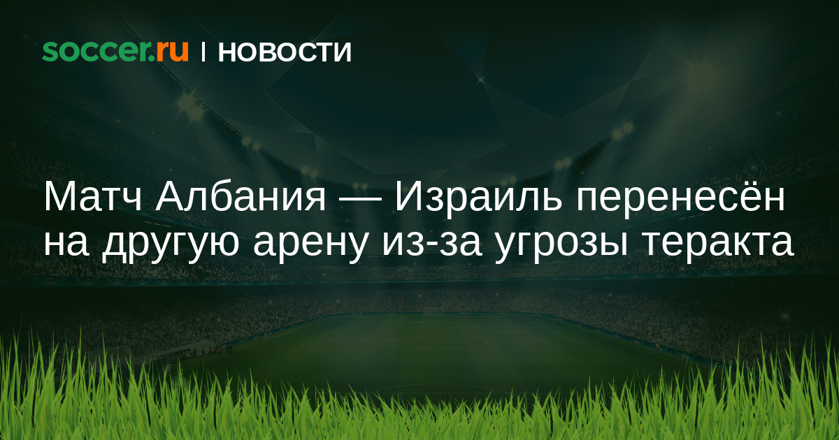 УЕФА принял решение о переносе матча отборочного турнира ЧМ-2018 между Албанией и Израилем. Встреча, которая должна состояться 12 ноября, пройдет не на стадионе в Шкодере, а в Эльбасане. Такой перенос вызван угрозой теракта. Ранее спецслужбы задержали в Шкодере группу лиц, которая готовила взрыв бомбы на стадионе во время матча.