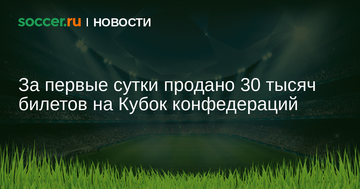 Тридцать тысяч билетов на Кубок конфедераций реализованы за первые сутки с момента начала продаж. Цена билетов на матчи группового этапа начинается от 960 рублей в четвертой категории (только для жителей России) и от 70 долларов в третьей категории (для остальных болельщиков).