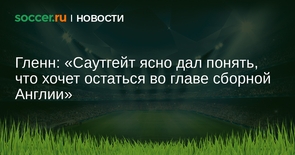 Президент Футбольной ассоциации Англии (ФА) Мартин Гленн считает, что Гарет Саутгейт останется наставником английской сборной, временное соглашение специалиста с которой истекло после матча с Испанией (2:2).
