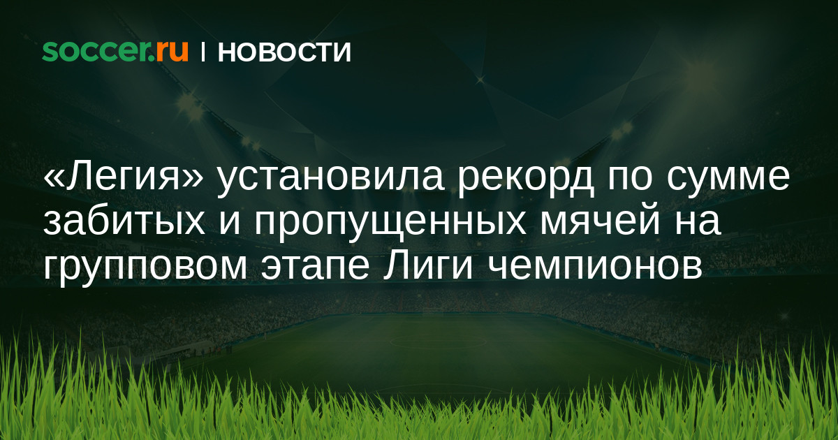 Польская «Легия» в матче 5-го тура группового этапа Лиги чемпионов против дортмундской «Боруссии», который завершился победой немецкой команды (8:4), побила рекорд по сумме забитых и пропущенных мячей в групповом раунде ЛЧ. За пять матчей варшавского клуба в текущем турнире было забито 32 гола (8:24).