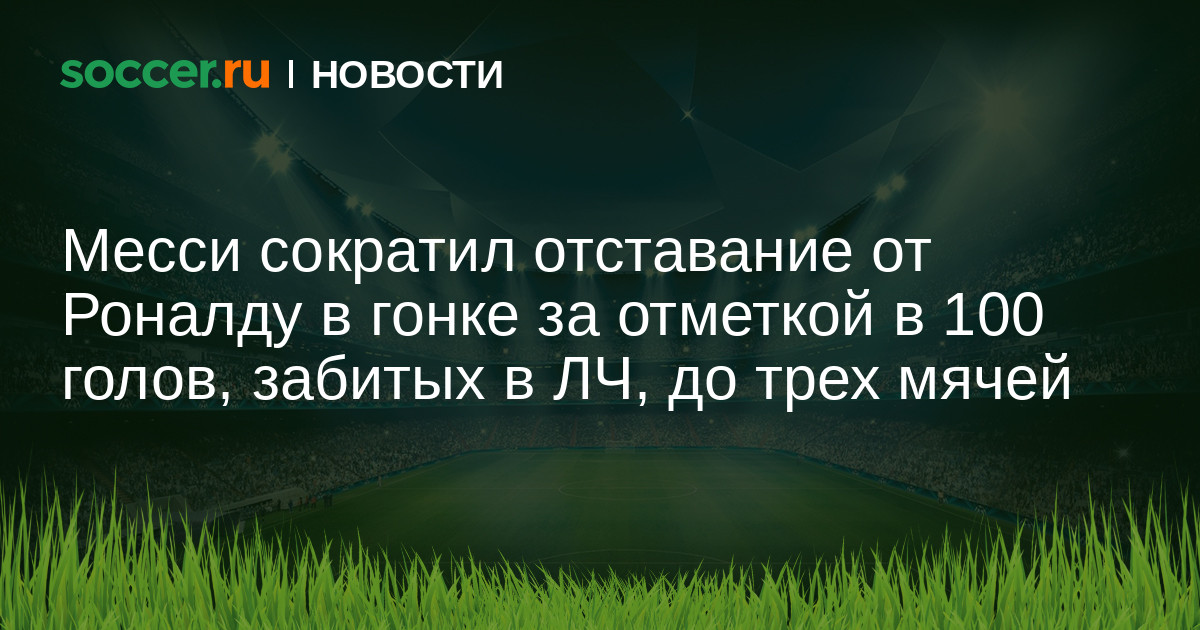 Два мяча, забитые нападающим «Барселоны» Лионелем Месси в ворота «Селтика» в матче 5-го тура группового этапа Лиги чемпионов (0:2), позволили аргентинцу сократить отставание от нападающего «Реала» Криштиану Роналду в гонке за покорением отметки в 100 голов, забитых в ЛЧ.