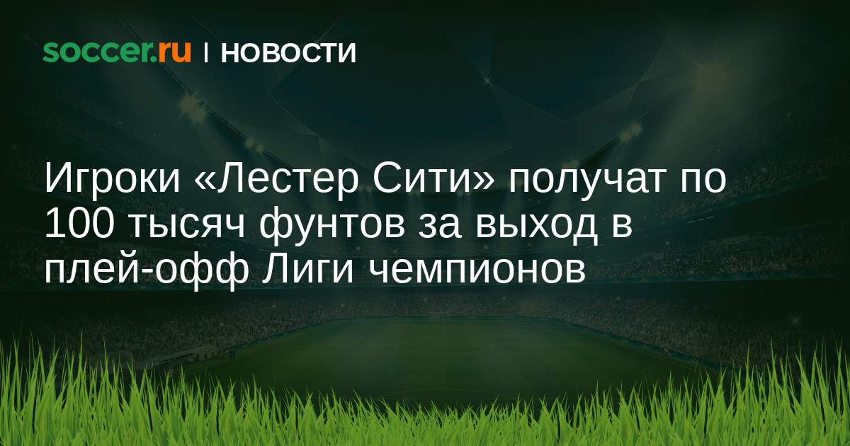 Футболисты «Лестер Сити» получат бонус в размере около £ 100 тыс. на человека за выход в плей-офф Лиги чемпионов. В матче 5-го тура «лисы» дома обыграли «Брюгге» (2:1), тем самым обеспечив себе первое место в группе G с 13 очками.