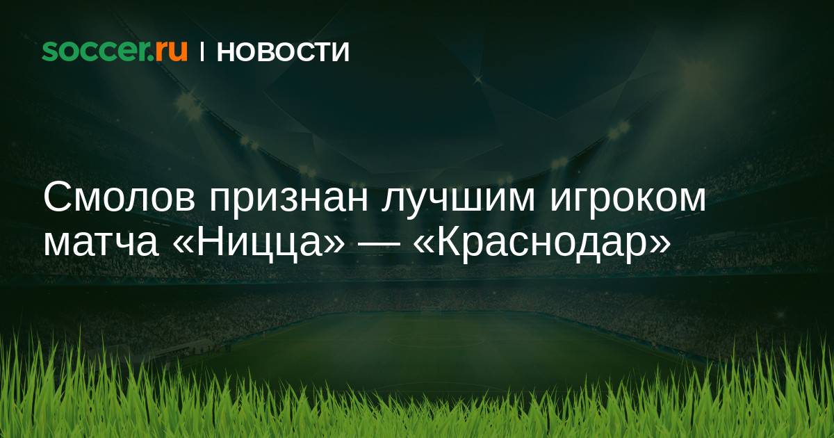 Нападающий «Краснодара» и сборной России Фёдор Смолов признан лучшим игроком гостевого матча 6-го тура группового этапа Лиги Европы с «Ниццей», который завершился поражением российской команды (1:2).