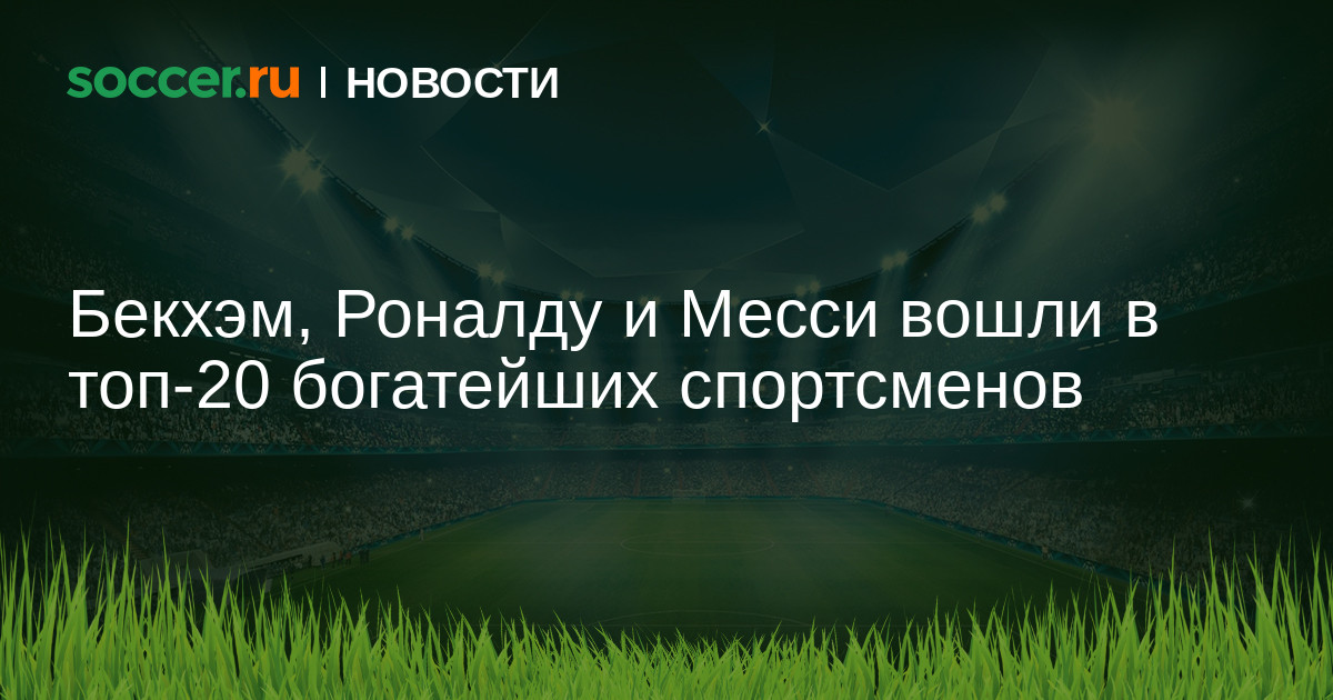 Авторитетный журнал Forbes провел оценку финансового состояния представителей различных видов спорта. По результатам исследования выяснилось, что в топ-20 богатейших спортсменов мира попали три футболиста. Это Дэвид Бекхэм, Криштиану Роналду и Лионель Месси, расположившиеся на 9-м, 14-м, и 17-м местах соответственно.