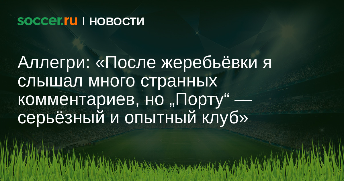 Главный тренер «Ювентуса» Массимилиано Аллегри не считает, что «бьянконери» повезло получить в соперники на стадии 1/8 финала Лиги чемпионов «Порту»: