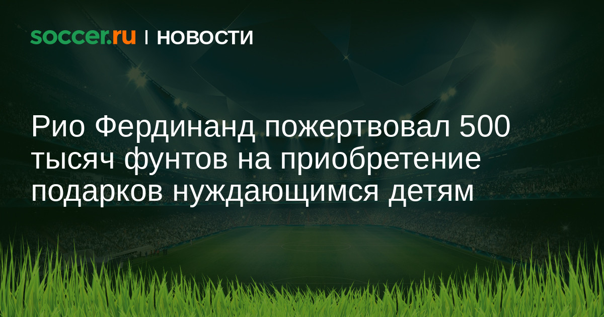 Бывший защитник «Манчестер Юнайтед» и сборной Англии Рио Фердинанд пожертвовал 500 000 фунтов на рождественские подарки нуждающимся детям.