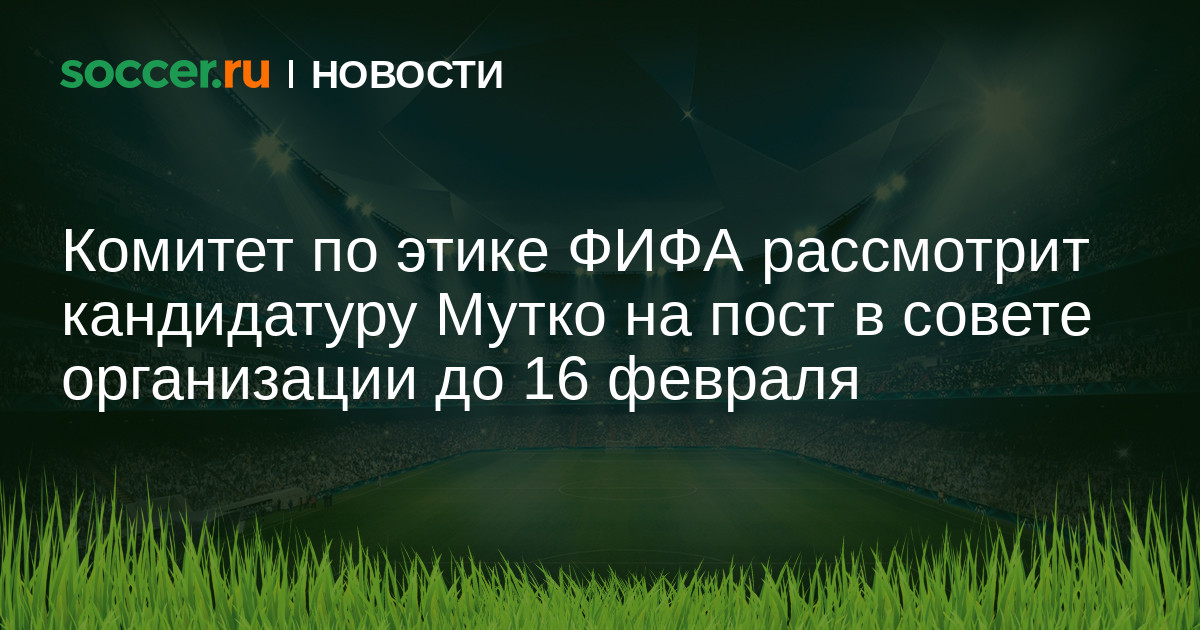 Президент РФС Виталий Мутко подтвердил, что его кандидатура была выдвинута УЕФА в Совет ФИФА. Для оценки законности его выдвижения Комитет по этике ФИФА проведет рассмотрение кандидата до 16 февраля, заявил сам Мутко.