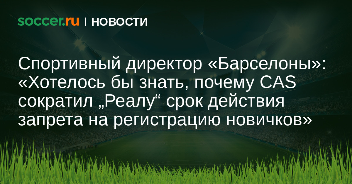Спортивный директор «Барселоны» Роберт Фернандес сообщил, что в каталонском клубе недоумевают, почему Спортивный арбитражный суд в Лозанне (CAS) сократил срок санкций ФИФА в отношении мадридского «Реала»: