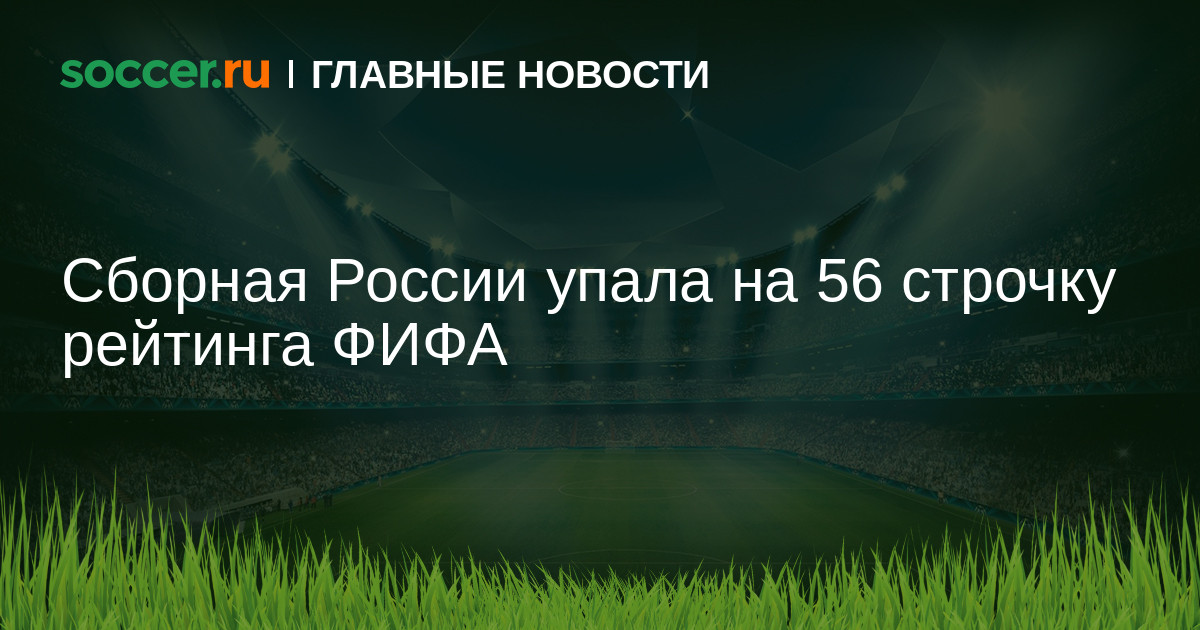 Сборная России продолжает падение в рейтинге ФИФА. На этот раз россияне оказались на 56-й позиции в рейтинге — худшее достижение в истории национальной команды.
