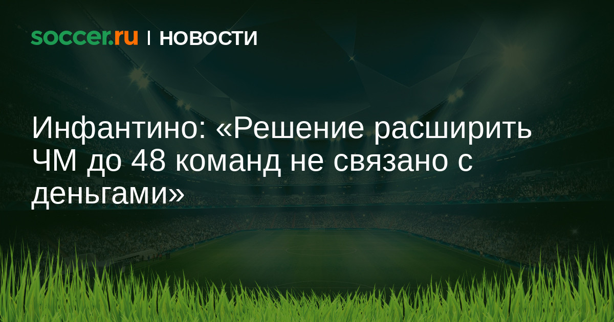 Президент ФИФА Джанни Инфантино подчеркнул, что решение увеличить число команд-участников финальной стадии чемпионатов мира с 32 до 48 не имеет финансовых причин: