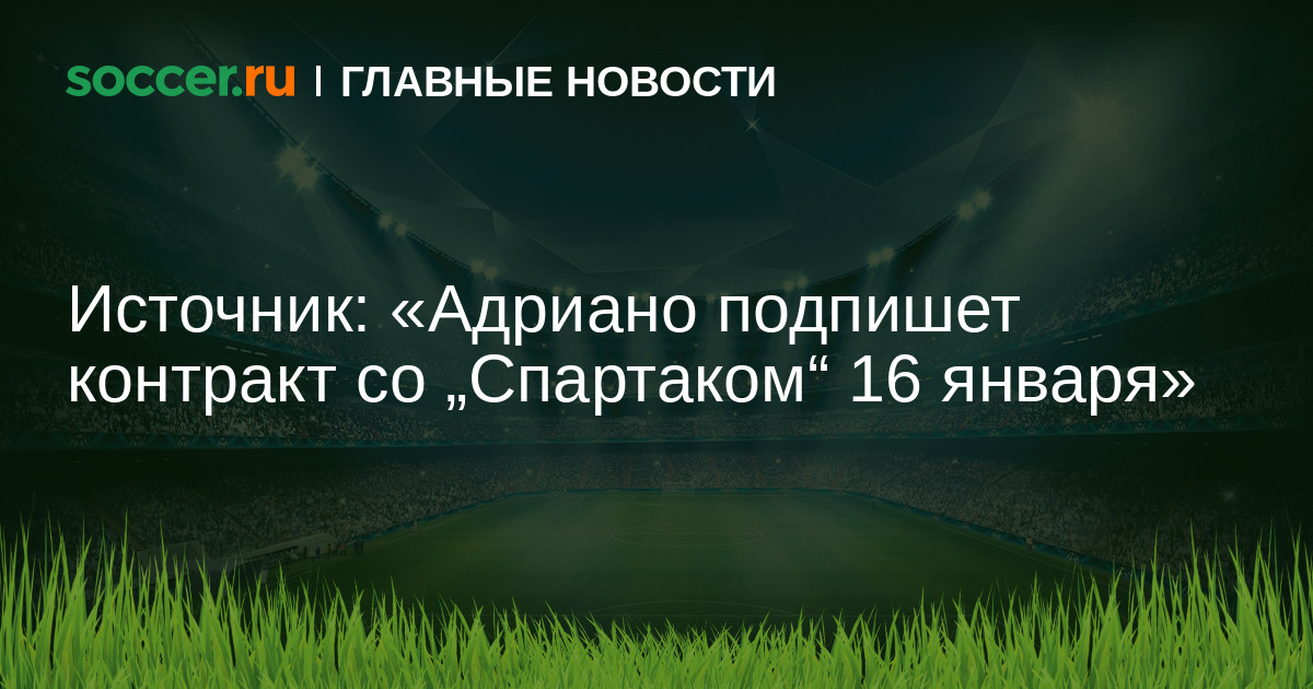 Бразильский форвард Луис Адриано 16 января подпишет контракт с московским «Спартаком». Согласно источнику, 29-летний бразилец прошел медосмотр, и контракт сроком на 3,5 года будет подписан уже в понедельник. Таким образом, 18 января Адриано должен отправиться со «Спартаком» на первый зимний сбор в ОАЭ.