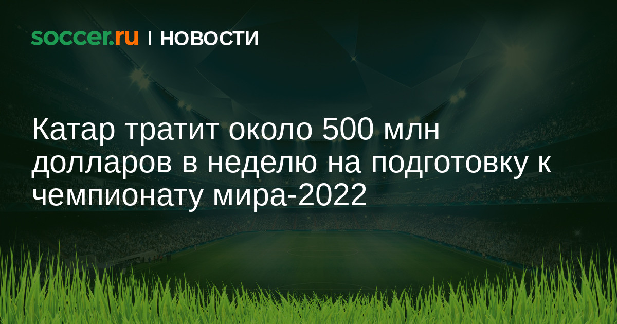 Министр финансов Катара Али Шариф аль Эмади заявил, что власти государства еженедельно тратят около 500 млн долларов на подготовку к чемпионату мира 2022 года:
