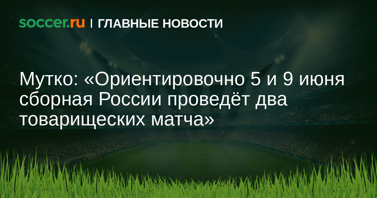 Президент РФС Виталий Мутко сообщил, что в начале июня, накануне старта Кубка Конфедераций, сборная России проведет две товарищеские встречи: