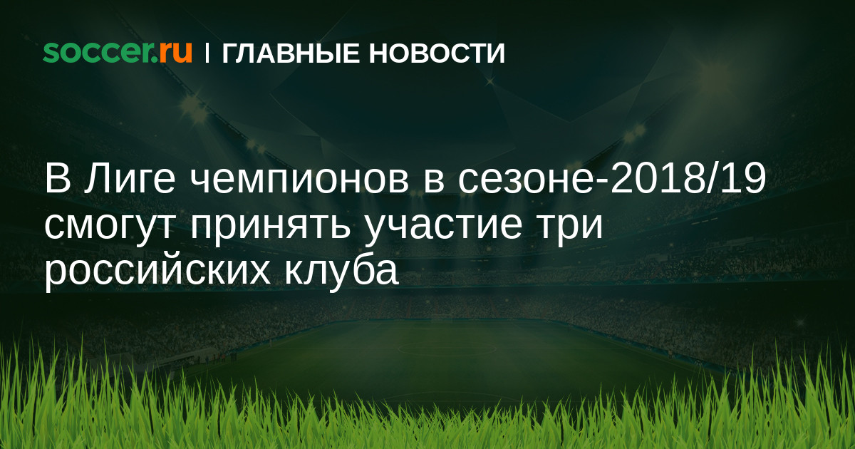 С сезона-2018/19 Россию смогут представить три команды в Лиге чемпионов, а также три клуба в Лиге Европы. Чемпион и серебряный призёр РФПЛ сезона-2017/18 отправятся напрямую в групповой этап Лиги чемпионов, а бронзовый призёр начнёт турнир в третьем отборочном раунде.