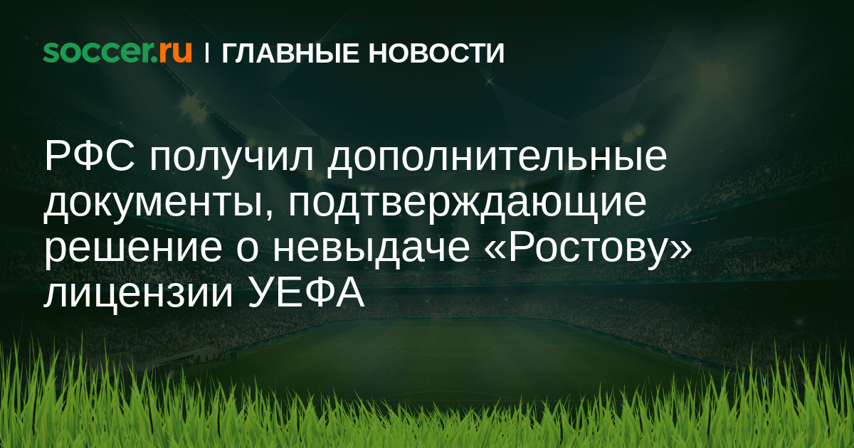 Российским футбольным союзом получены дополнительные документы, в полной мере подтверждающие обоснованность решения директивных органов РФС по лицензированию футбольных клубов о невыдаче ФК «Ростов» лицензии УЕФА на спортивный сезон 2014-15 гг.