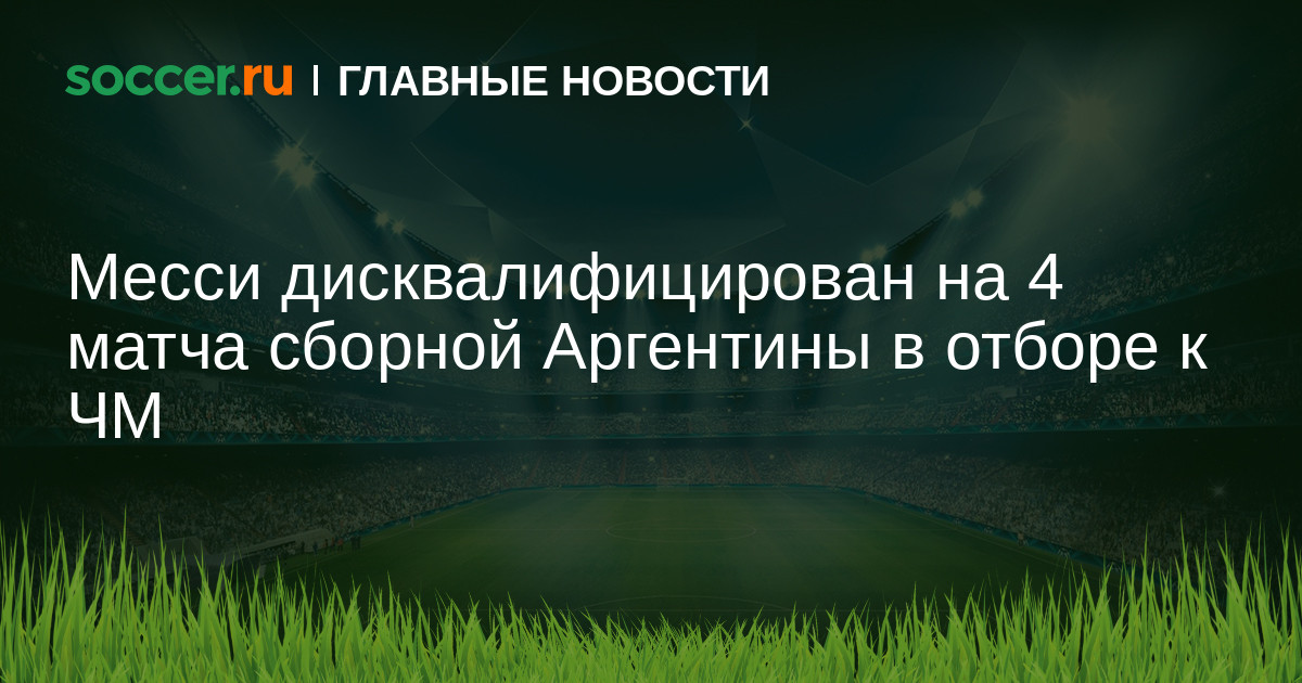 Нападающий сборной Аргентины Лионель Месси дисквалифицирован на следующие четыре матча «бело-голубых» в отборе к ЧМ-2018. Данные санкции были применены из-за инцидента в поединке с Чили (1:0), когда Месси, используя ненормативную лексику, оскорбил бокового арбитра Марсело Ван Гассе, а по окончании встречи отказался пожать тому руку.