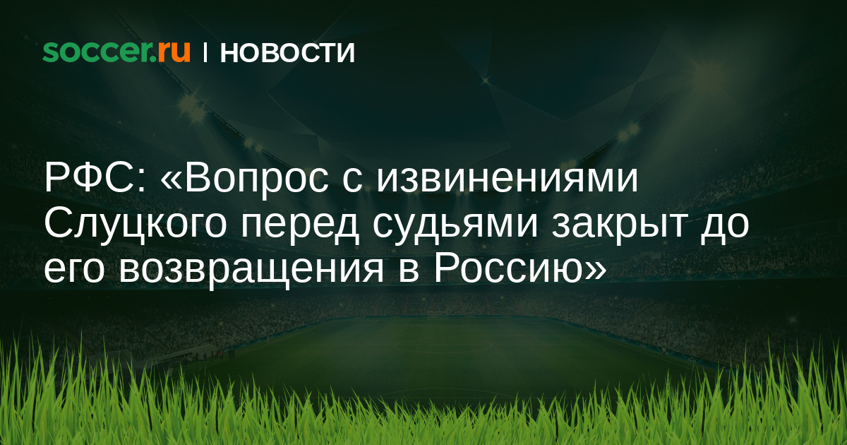Председатель комитета по этике Российского футбольного союза Павел Андреев дал понять, что вопрос, касающийся извинений Леонида Слуцкого, который сейчас находится в Великобритании, перед российскими арбитрами, будет рассматриваться, когда тренер вернется в Россию: