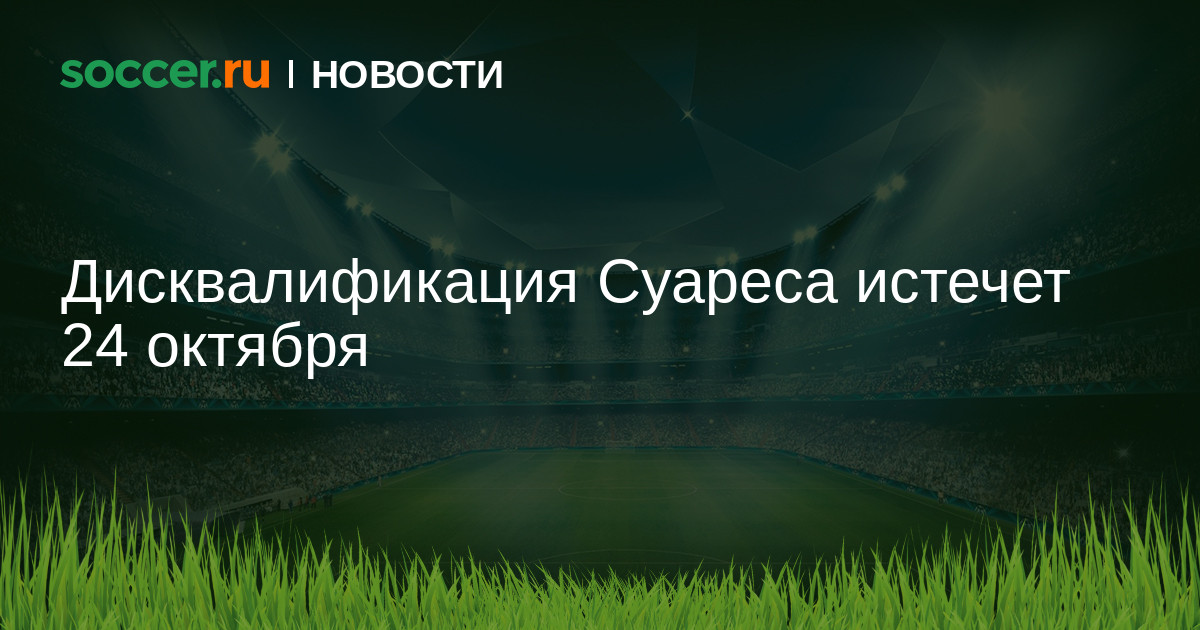 Международный спортивный арбитражный суд подтвердил информацию о том, что дисквалификация нападающего «Барселоны» Луиса Суареса истечет 24 октября.
