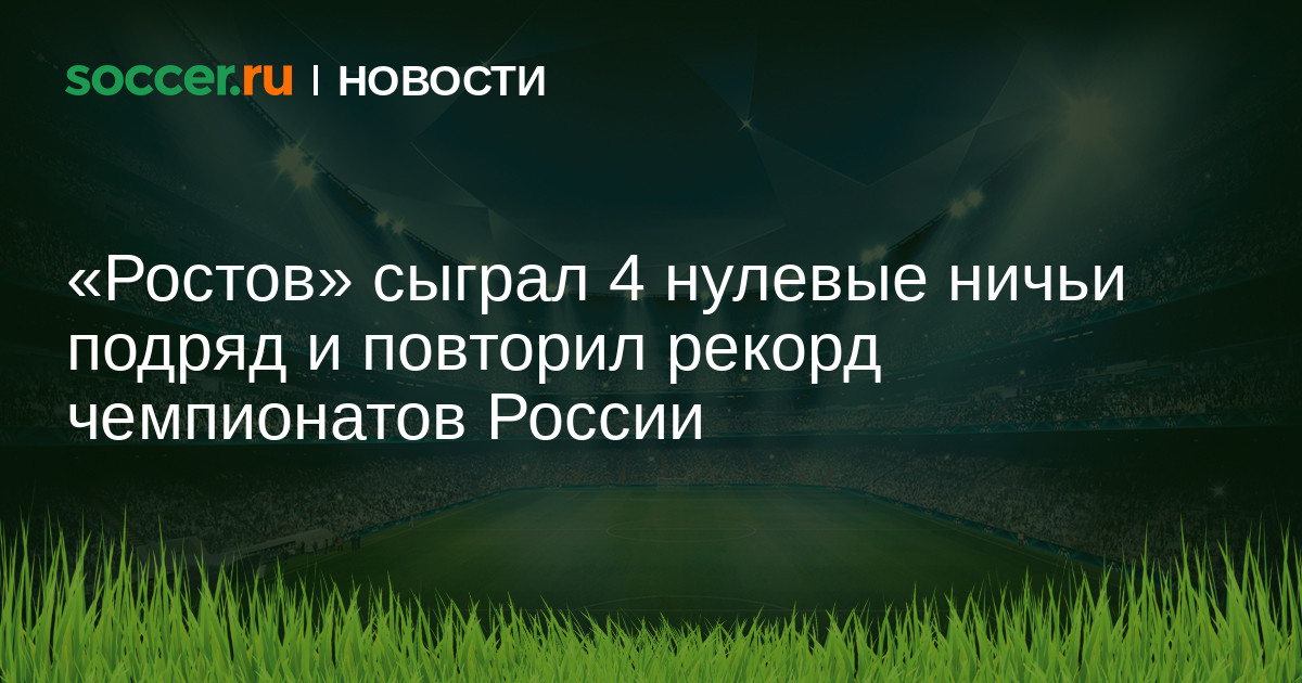«Ростов» в поединке 22-го тура РФПЛ сыграл вничью с «Локомотивом» (0:0). Эта нулевая ничья стала для дончан четвертой подряд в чемпионате России. Ранее в истории только одна команда добивалась подобного «достижения». В 1999 году такую же серию выдало московское «Торпедо».