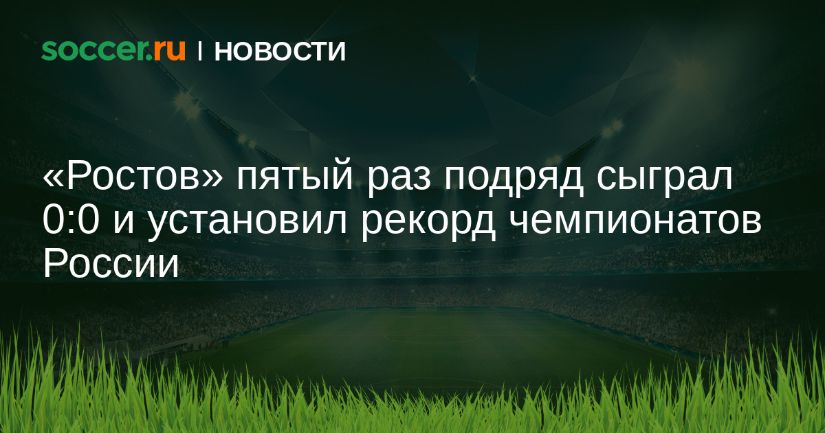 В матче 23-го тура РФПЛ «Ростов» на выезде сыграл вничью с ЦСКА (0:0). Таким образом, дончане установили рекорд чемпионатов России, пятый раз подряд сведя поединок первенства к нулевой ничьей.