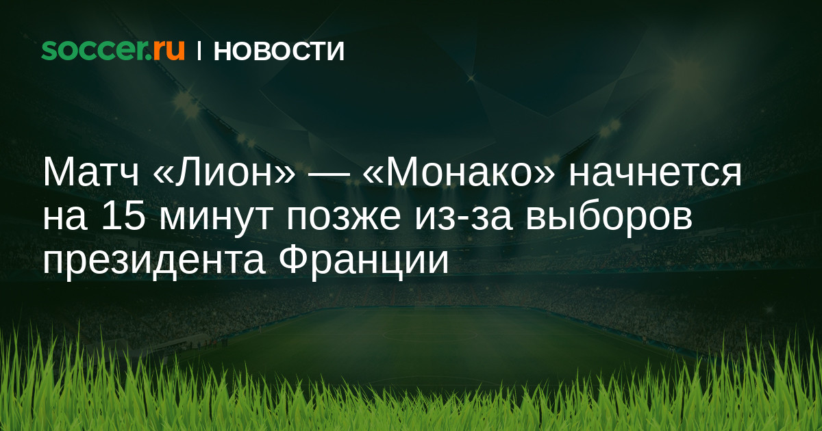 Сегодняшний матч 34-го тура Лиги 1 «Лион» — «Монако» начнется на 15 минут позже запланированного времени из-за первого тура президентских выборов во Франции. Перенести начало встречи попросил Canal +, владеющий правами на телетрансляцию. Таким образом, матч начнется в 22:15 мск.