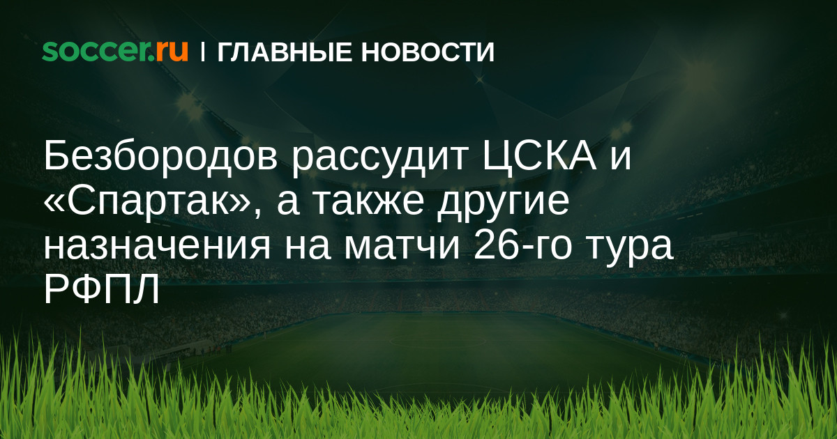 Назначены арбитры и инспекторы на матчи 26-го тура РФПЛ.