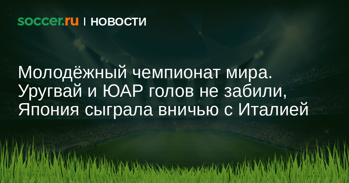 В матчах третьего тура группового этапа молодежного чемпионата мира группы D сборная Уругвая сыграла вничью с ЮАР (0:0), а Япония отыграла два мяча у Италии (2:2). В плей-офф вышли уругвайцы и итальянцы, а японцы сохраняют теоретический шанс на преодоление группового этапа.