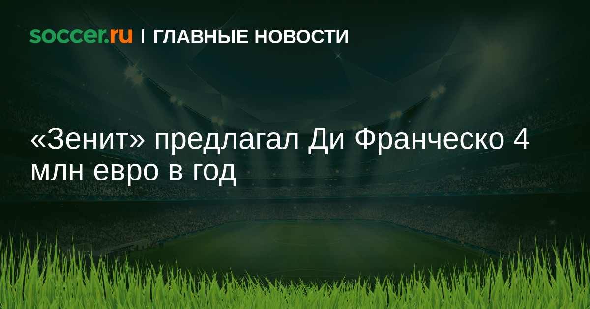 Как сообщает источник, руководство «Зенита» после отставки Мирчи Луческу с поста главного тренера команды предлагало бывшему наставнику «Сассуоло» Эусебио Ди Франческо трёхлетний контракт с ежегодной зарплатой в 4 млн евро, однако итальянский специалист отказался от предложения, так как хотел возглавить «Рому».