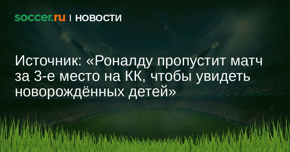 Нападающий сборной Португалии Криштиану Роналду не сыграет в матче за третье место на Кубке Конфедераций-2017. Как сообщает источник, тренерский штаб разрешил игроку «Реала» уехать, чтобы увидеть своих новорождённых детей.