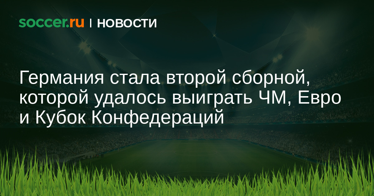 Сборная Германии стала второй национальной командой в истории, которой удалось выиграть чемпионат мира, чемпионат Европы и Кубок Конфедераций. Сборной, которой впервые удалось это сделать, является национальная команда Франции.