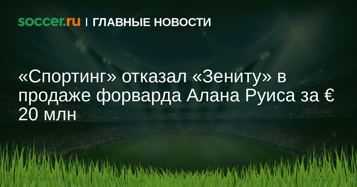 Лиссабонский «Спортинг» отклонил предложение «Зенита» в размере € 20 млн за форварда Алана Руиса, утверждает источник. Отмечается, что португальский клуб хочет получить за 23-летнего футболиста € 30 млн.